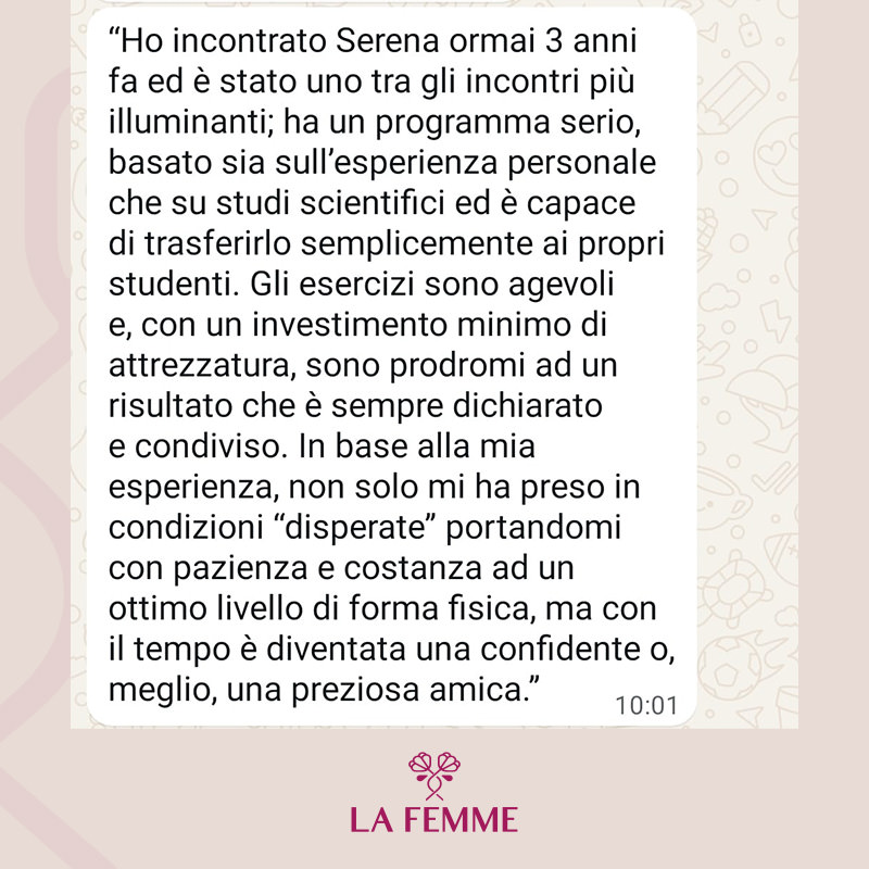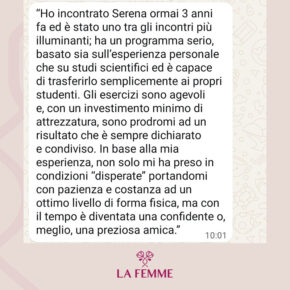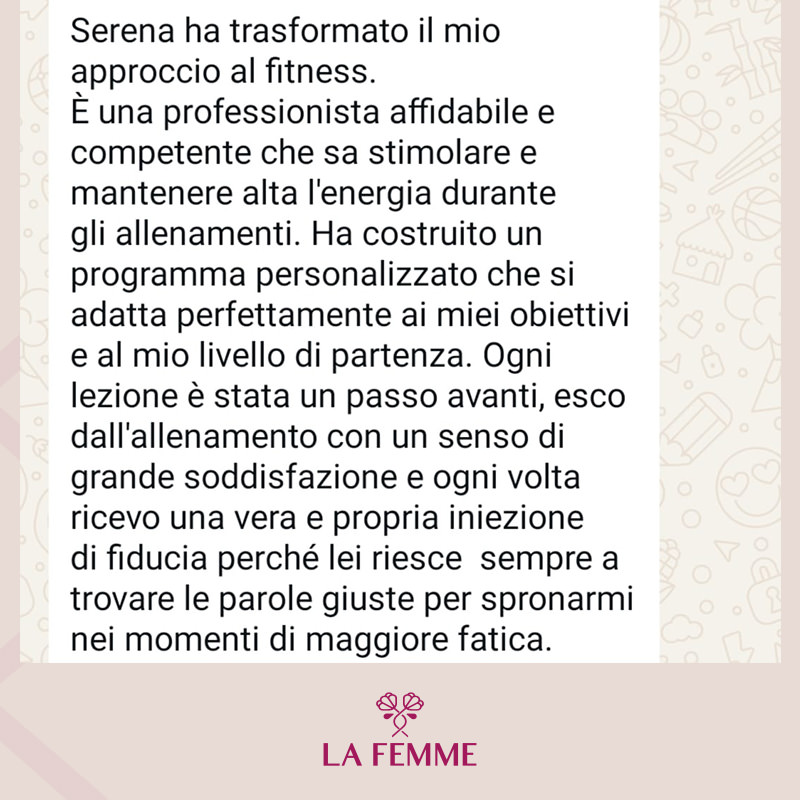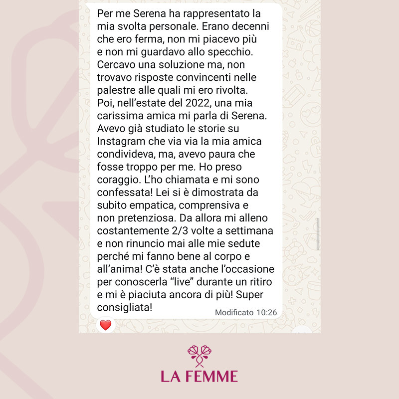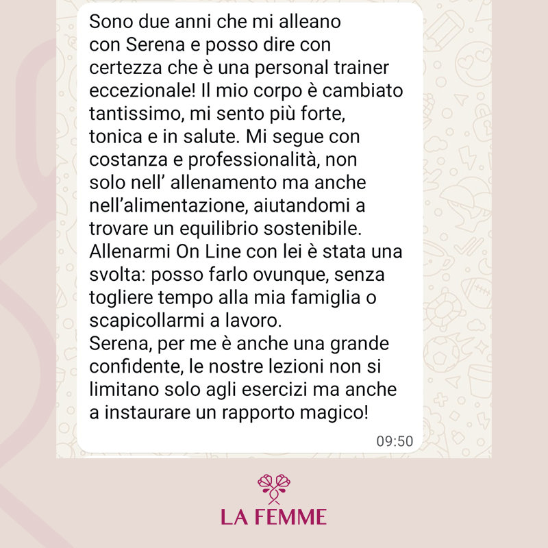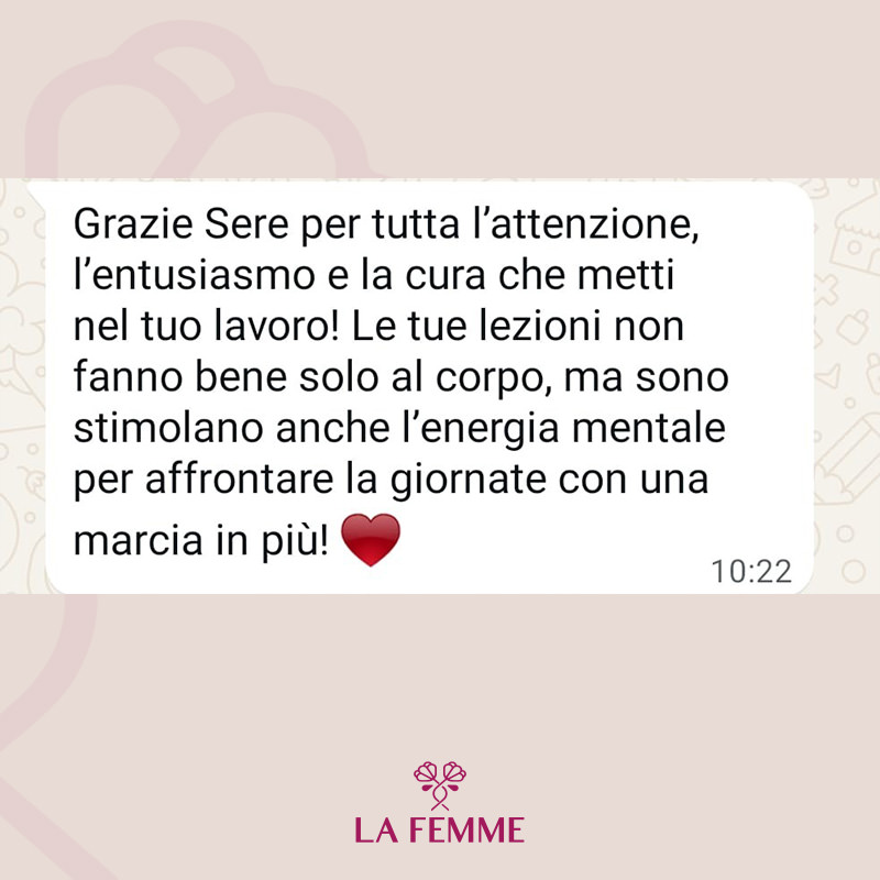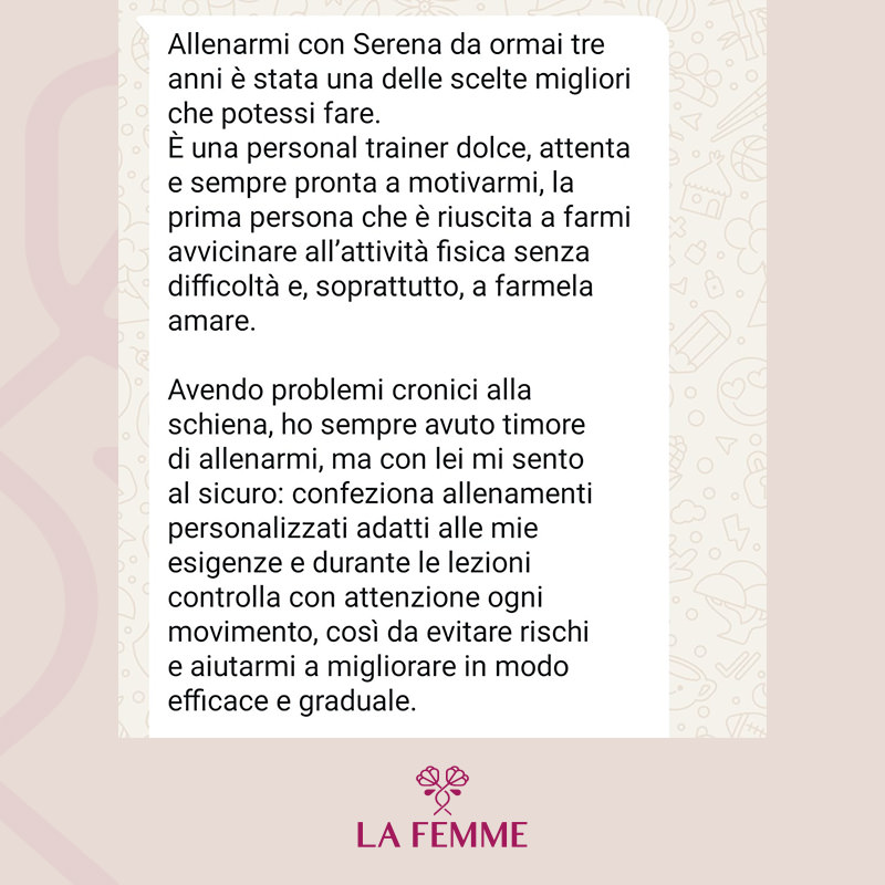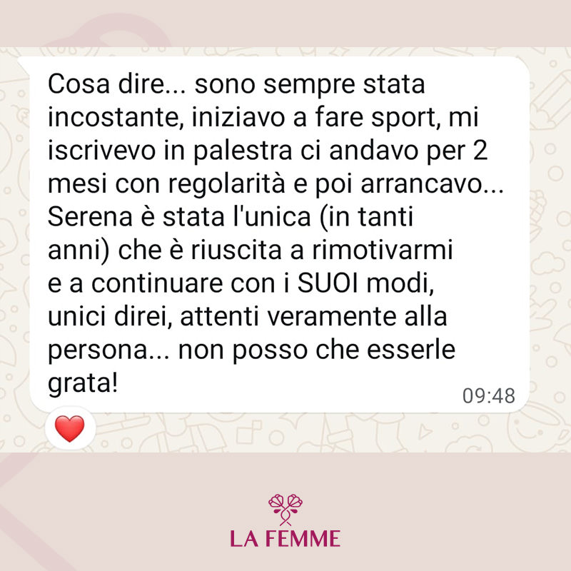 La Femme nasce dal desiderio profondo di ispirare le persone a ritagliarsi uno spazio per sé, per muoversi e prendersi cura del proprio benessere, sempre e ovunque. In un mondo che corre veloce, dove spesso dedichiamo tempo ed energie a tutto ciò che ci circonda — il lavoro, la famiglia, gli impegni — ritrovare il proprio equilibrio attraverso il movimento e uno stile di vita sano diventa un atto prezioso. Non è una questione di tempo, ma di scelta: non cercare scuse, trova nuove opportunità.